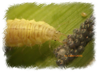 Parasitoides. Son insectos que se desarrollan dentro de un solo hospedero, y al cual matan al término de su desarrollo larvario. El estado adulto es libre y muy móvil para localizar a sus hospederos y parasitarlos colocando huevos dentro o sobre ellos. Muchos de estos parasitoides son monófagos, los cuales servirán efectivamente para el control de las plagas. Algunos ejemplos de liberación y establecimiento de parasitoides son Trichogramma sp. y Telenomus sp. entre otros mas.